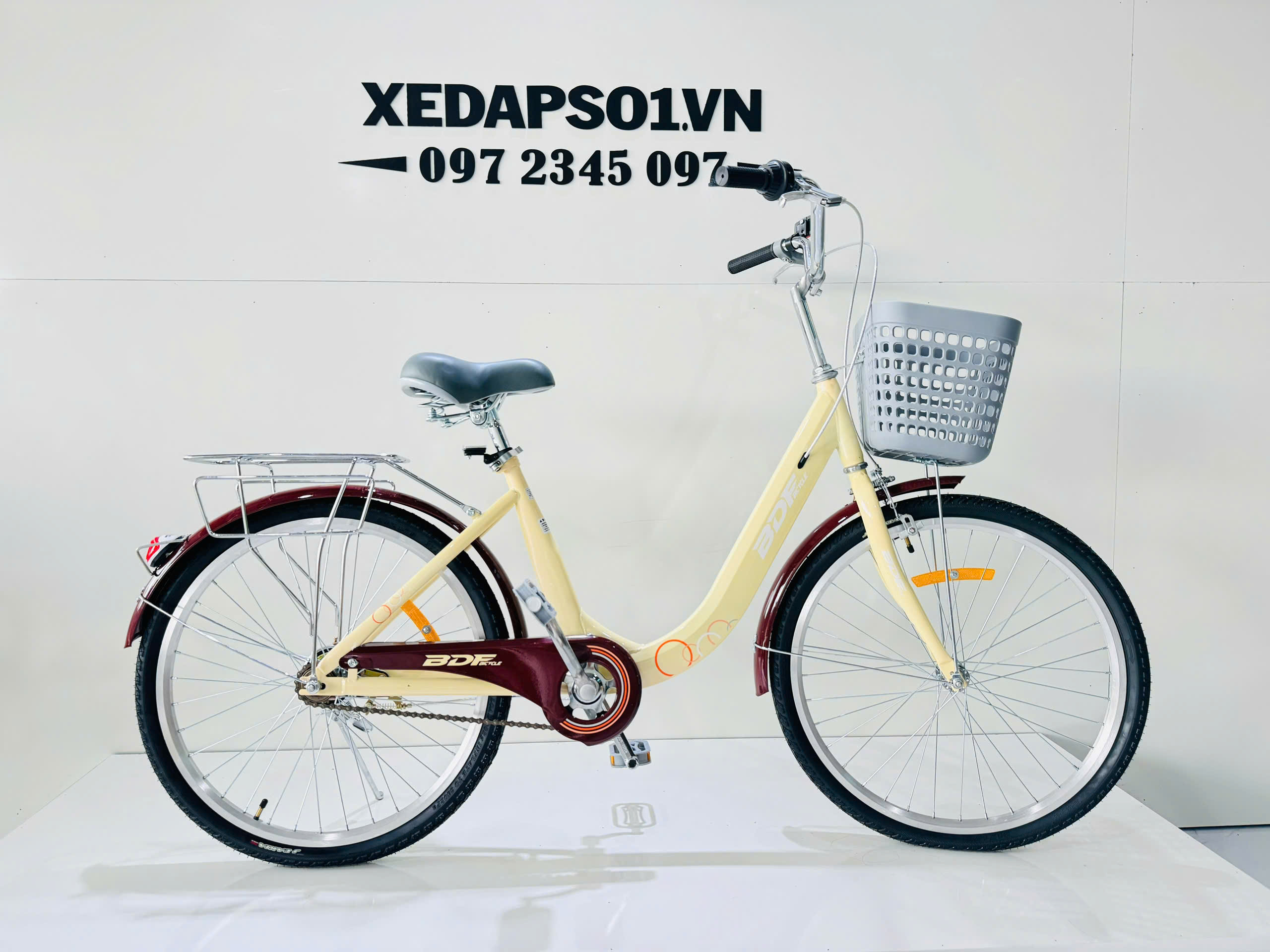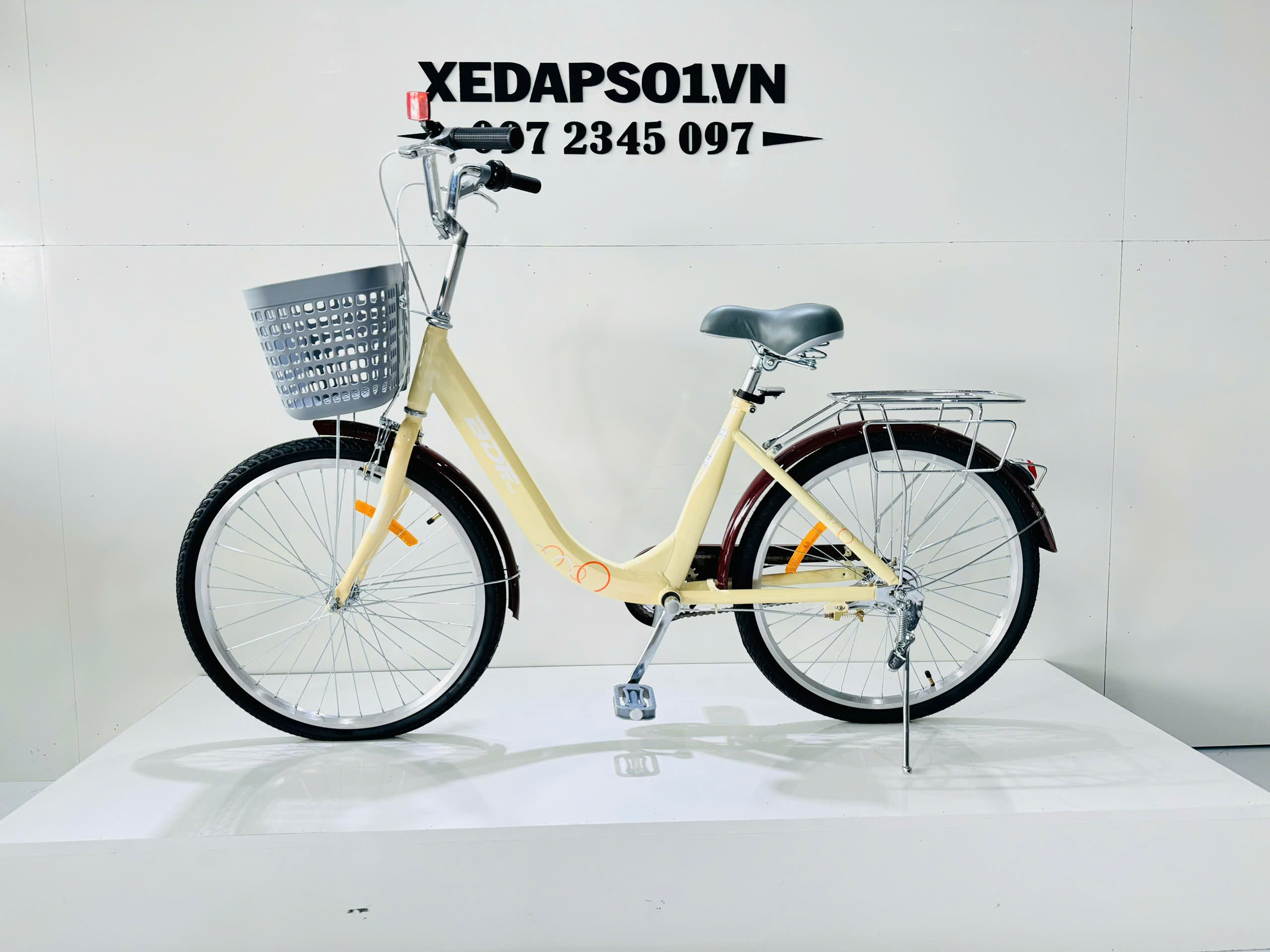 Mẫu xe đạp mới nhất được hãng cung cấp ra thị trường với màu sắc bắt mắt và xe được trang bị đầy đủ baga, giỏ mây tiện lợi và thể dục thể thao rất tốt, dễ đi và an toàn.